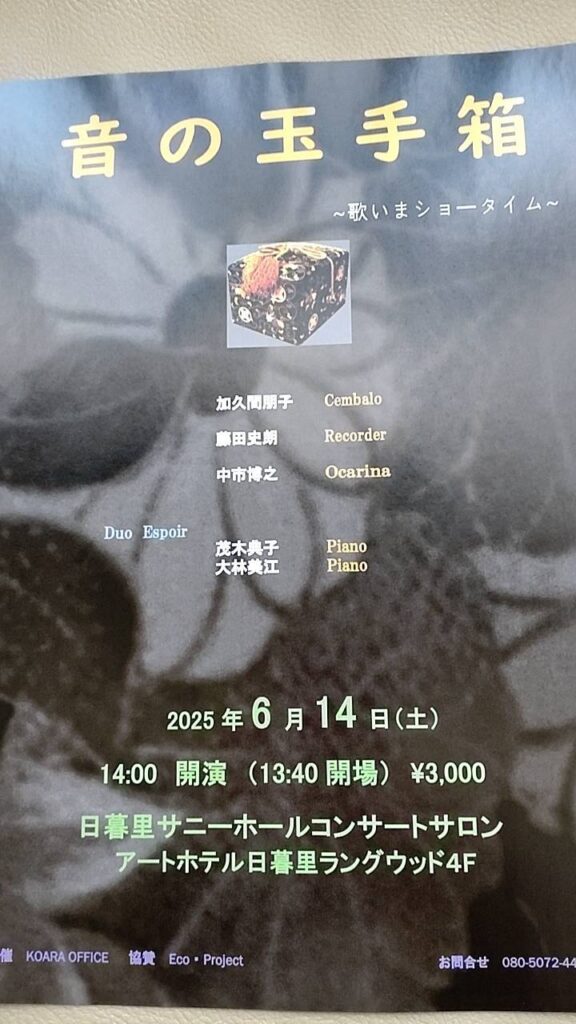 ◉2025年6月14日(土)後輩のピアニストさんとトランペット専攻の男子(もう子供ではない!?)の主催するコンサートシリーズによんでいただきました。