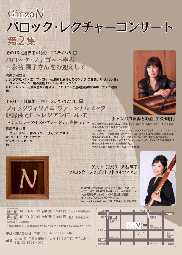◉銀座バロックレクチャーコンサート 2022年7月2日(土)GINZA N