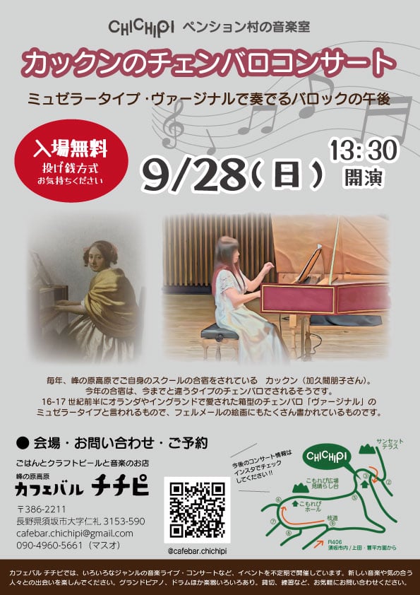 開場は13:00でチェンバロ体験が組み込まれています。