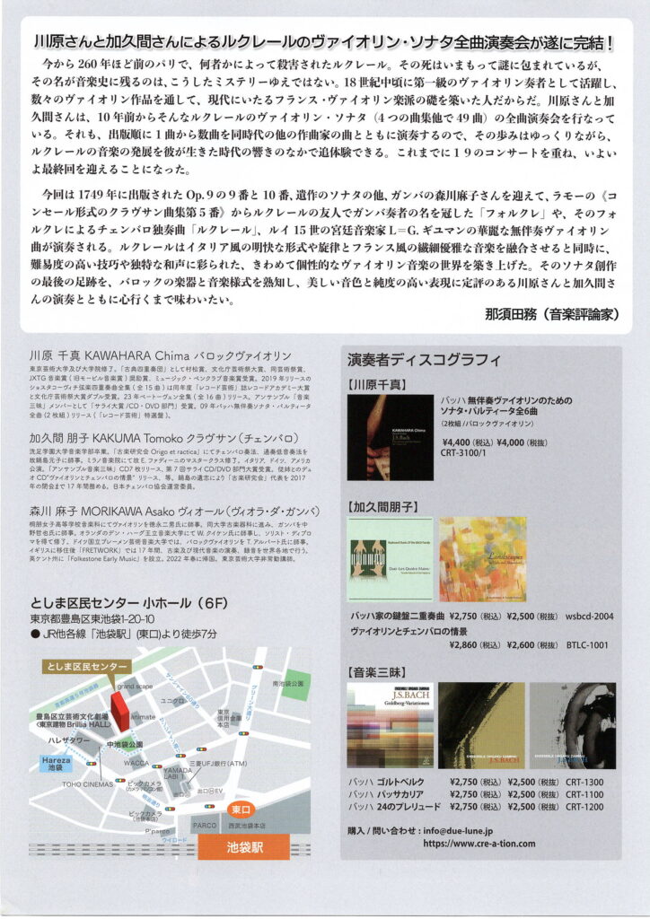 <演 奏> 川原 千真(バロック・ヴァイオリン)、加久間 朋子(チェンバロ)